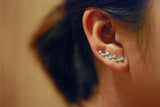 Ear climbers are shaped like a hair pin, it has no lock at the back. You slide the pin up your ear piercing. They are made to fit most ears, however you can still pinch them a little to make then snugger. Please refrain from pulling the pin too far away from the base.